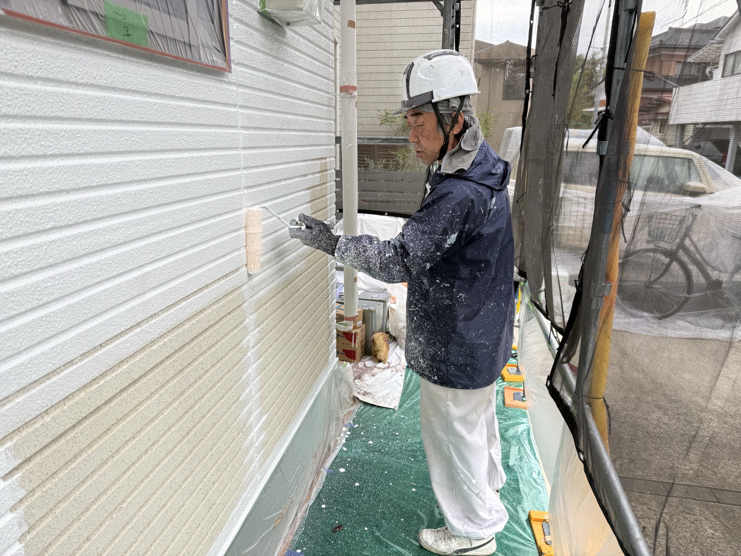 今日は横浜市保土ヶ谷区上菅田町で外壁の下塗りと中塗り作業をしてきました。