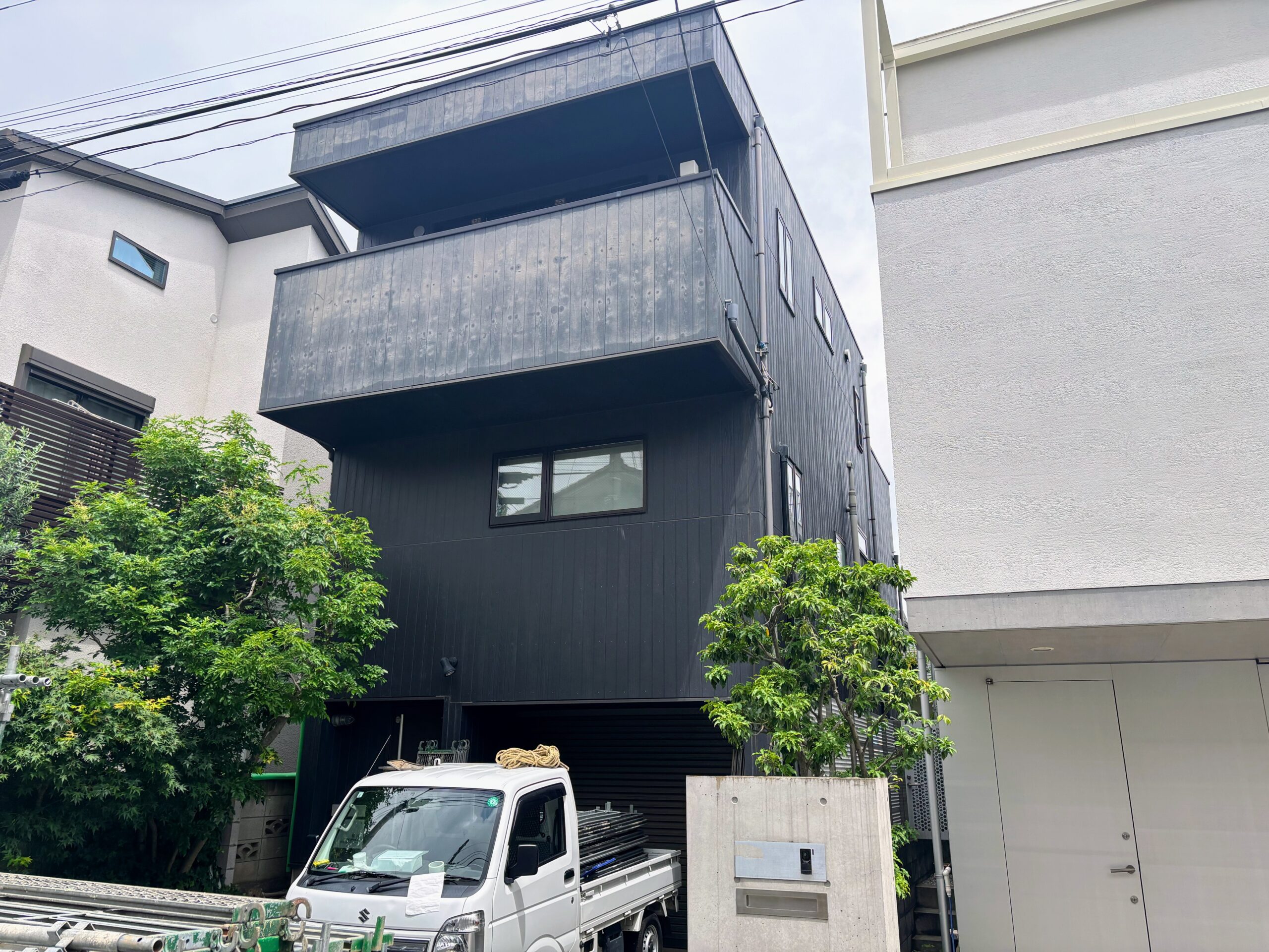 ブラックに近いグレー色ですが、植木の緑と青空のコントラストに、よく映えていますね✨️