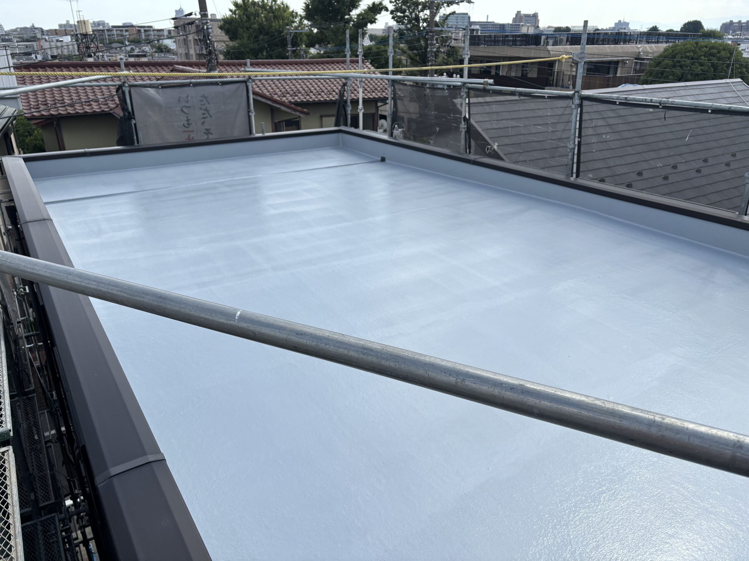このような感じに陸屋根の遮熱トップコート作業が完了しました。