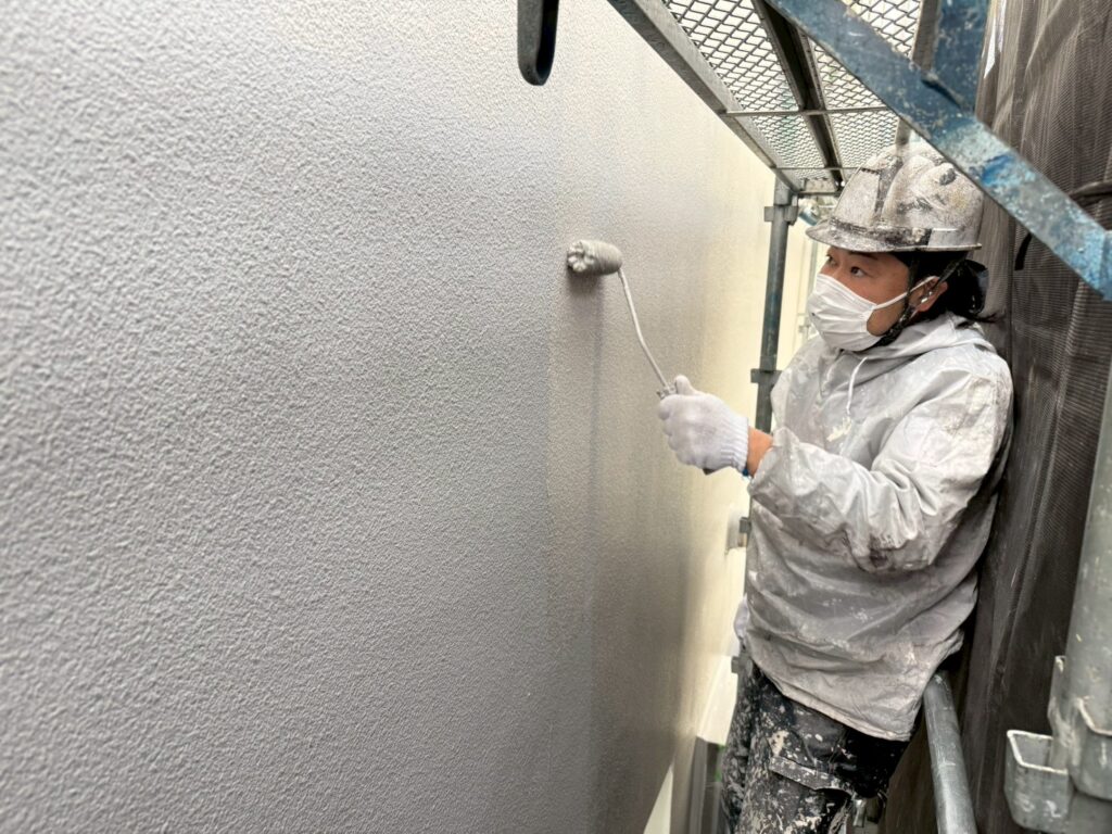 外壁塗装工程の最終段階で塗料を塗り重ねる作業のことです。主に「下塗り」「中塗り」を経て行われ、外壁の耐久性向上や美観の決定を行う非常に重要な工程です。単に色を塗るだけでなく、専用塗材による凹凸模様(パターン)付けや質感演出を指す場合もあります。