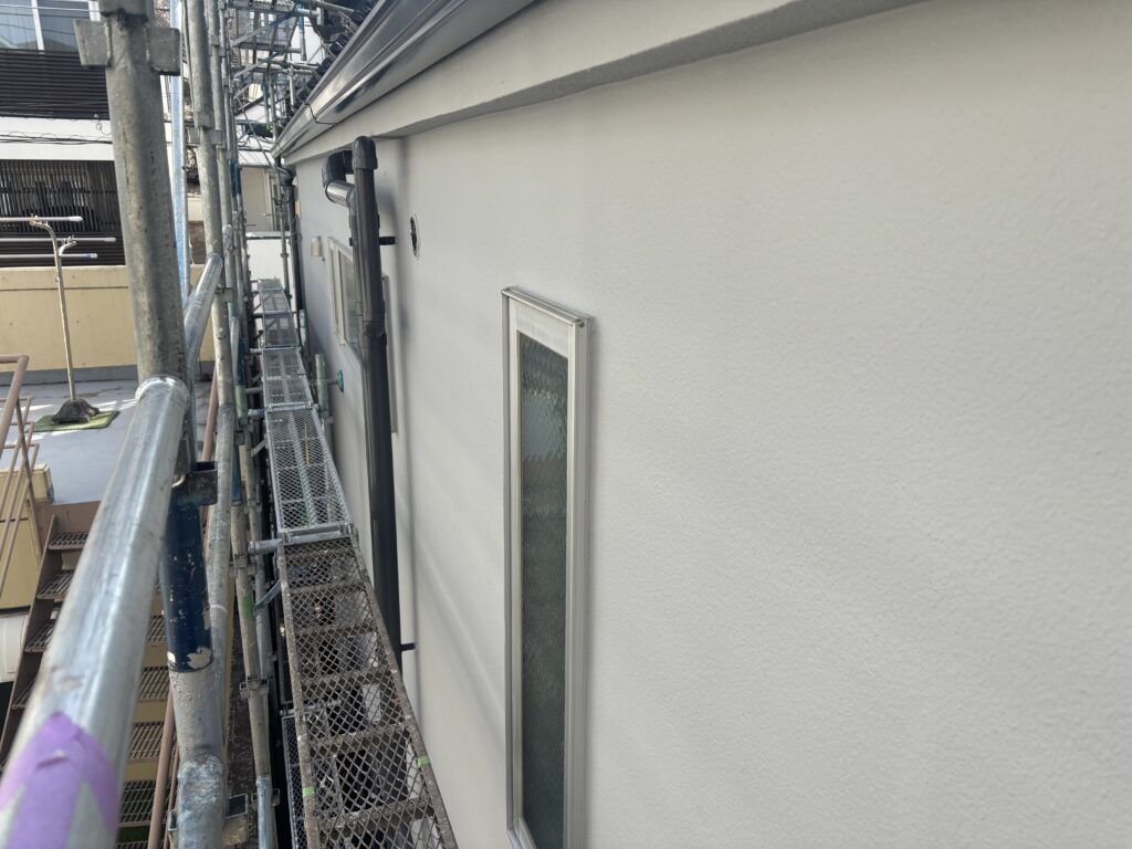 外壁仕上げ塗り作業後