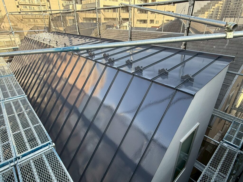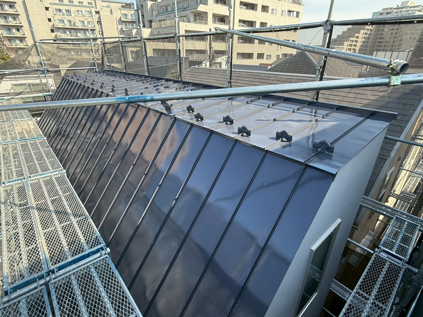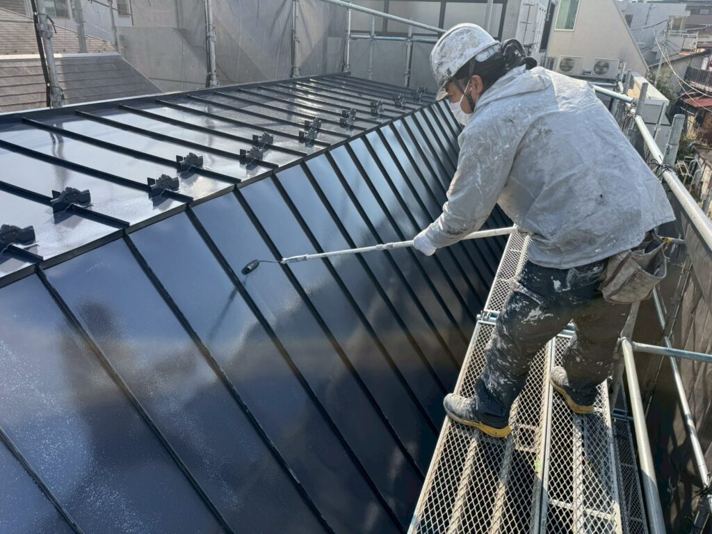 今日は世田谷区池尻で屋根の仕上げ塗り作業をしてきました。(遮熱塗装)