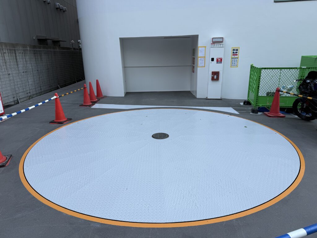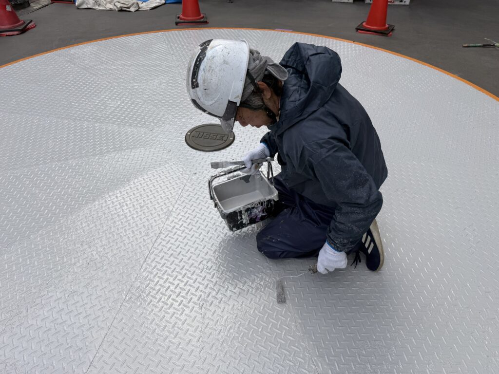 今日は渋谷区、渋谷で駐車場ターンテーブルの中塗りと仕上げ作業を行いました。